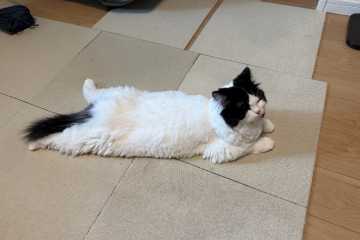 この時期、冬毛に生え変わるのか、オレオさんの毛がよく浮遊している。