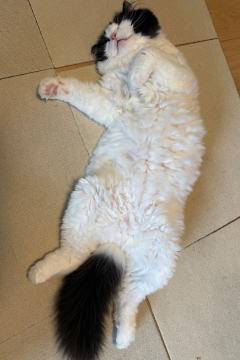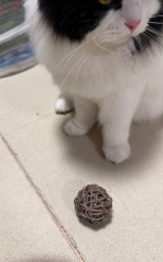 仔猫時代はオレオに向けて転がすと蹴ったり跳ねたりして遊んでましたが、成猫になるにつれて塩対応。